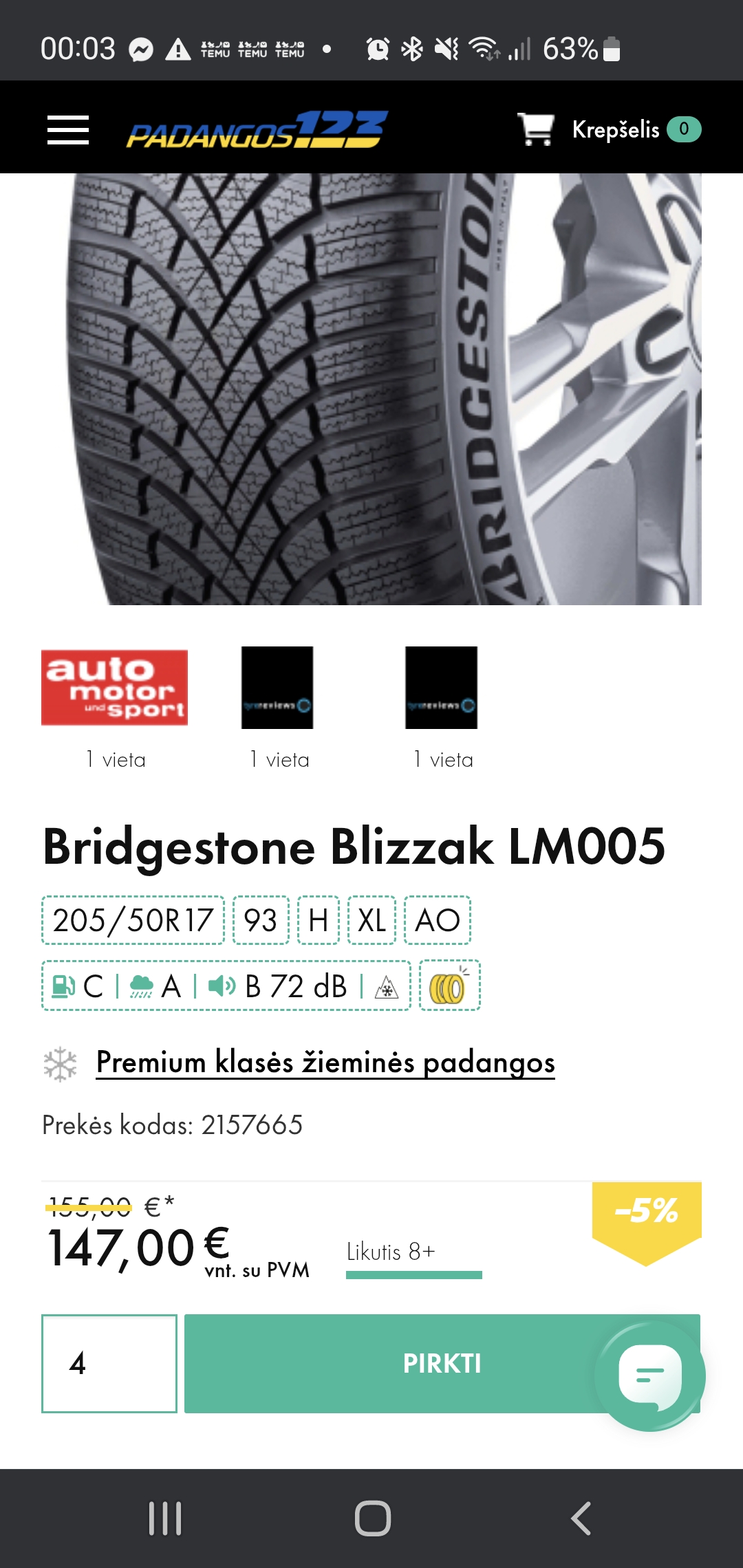 Apie Bridgestone Blizzak LM005